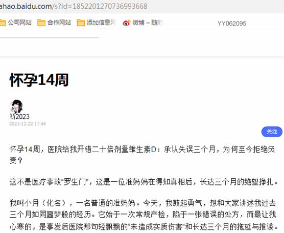 怀孕14周,医院给我开错二十倍剂量维生素D:承认失误三个月,为何至今拒绝负责?