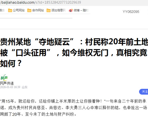 贵州某地“夺地疑云”:村民称20年前土地被“口头征用”,如今维权无门,真相究竟如何?
